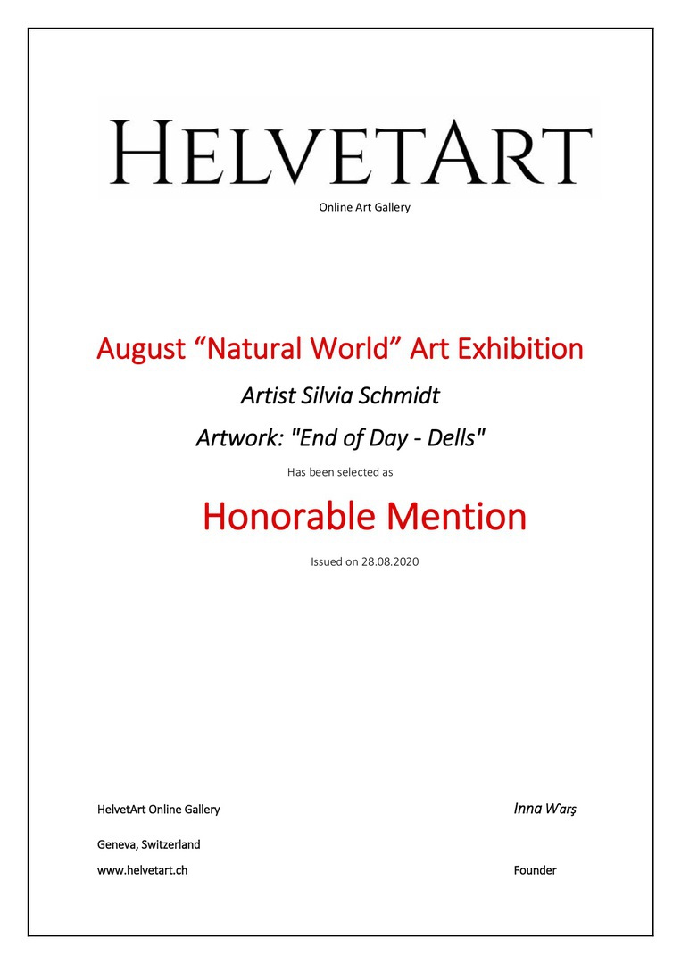 Aus dem Text des Veranstalters: Der international renommierte und begehrte Kunstpreis wird seit 2002 an herausragende Künstler der Medien Malerei, Grafik, Digitale Kunst, Fotografie, Installationskunst und Skulptur vergeben und hat sich für viele der Nominierten und Preisträger nachweislich als Sprungbrett in eine höhere Stufe ihrer Künstlerkarriere erwiesen und etabliert! Für das Jahr 2020 wird die Vorauswahl der Nominierungen mit den gewohnten hohen Maßstäben an Qualität und Originalität der eingereichten Kunstwerke stattfinden.